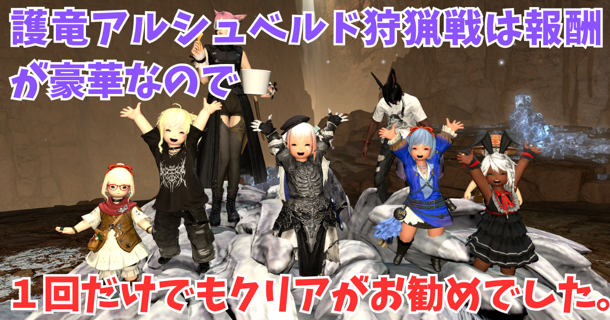 この記事は、『【FF14】護竜アルシュベルド狩猟戦は報酬が豪華なので1回だけでもクリアがお勧めでした。』です。