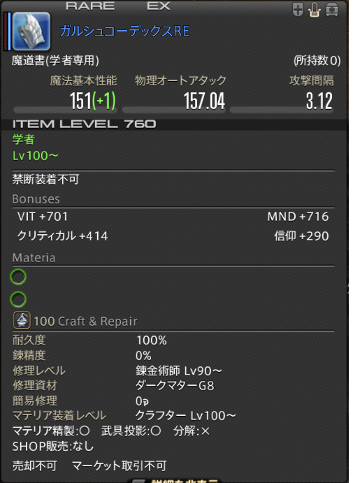 なんと、極のクリアでドロップする素材で、IL760とかいうメジャーパッチ内ユニクロ最強装備に強化可能です。