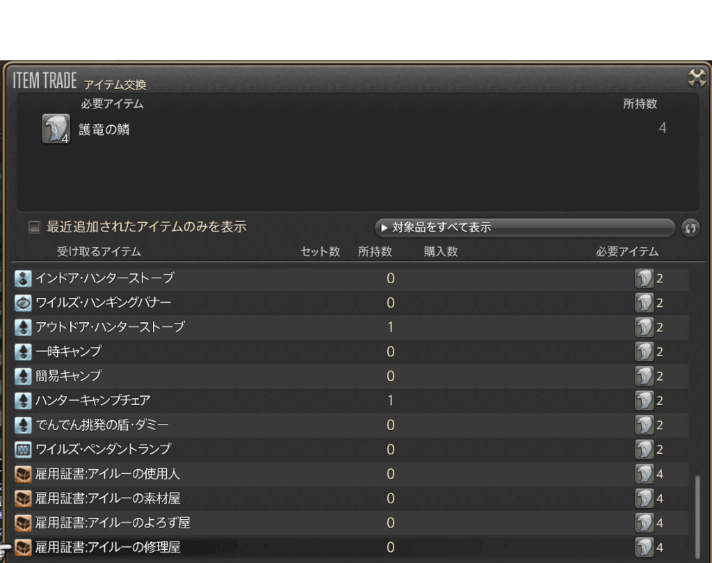 • 雇用証書:アイルーの使用人
