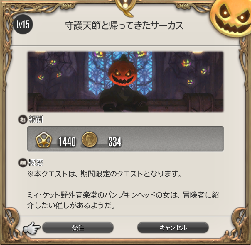 今年のイベント概要としては、クエスト名が『守護天節と帰ってきたサーカス』です。