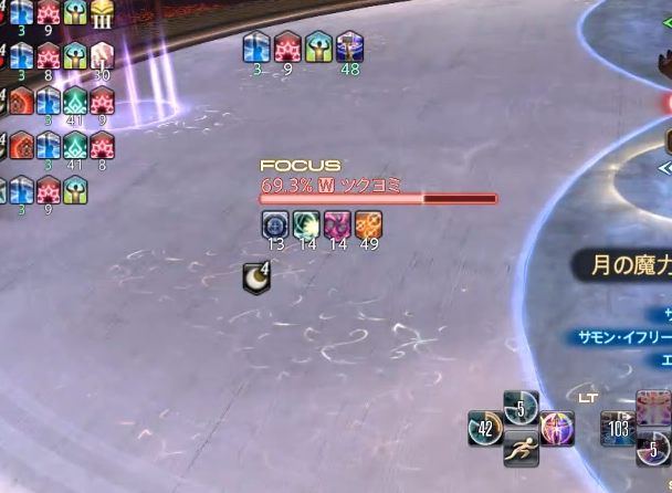 最初は結構見分けづらいのですが、アイコンやデバフ欄の表示で月の位置に当たる方の色が、自分の今の色になります。