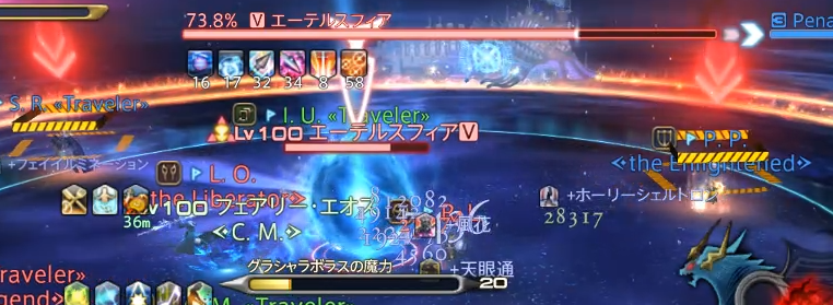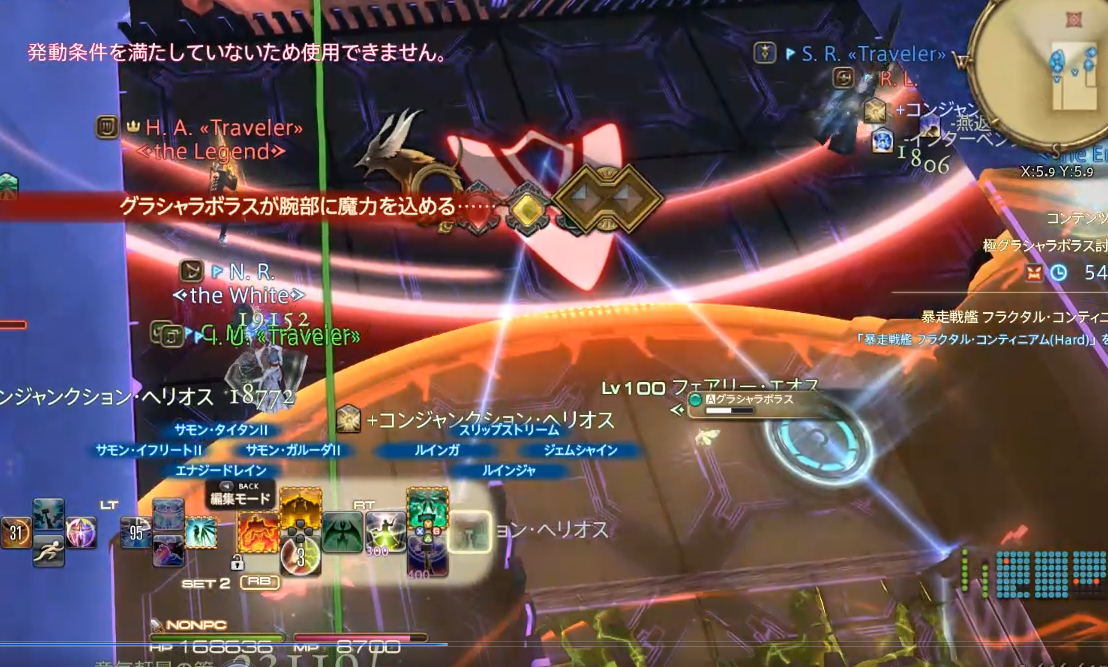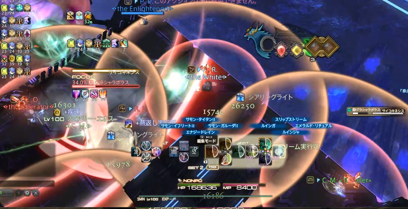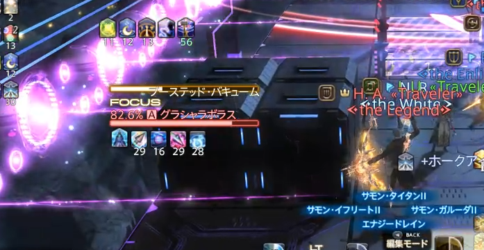 下のSSのグラシャラボラスの魔力というゲージが100になる前に、中央の雑魚?を削り切らないと、履行のダメージがカンストになってワイプ確定です。