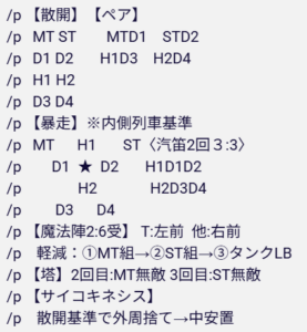 特に魔法陣処理中は、完全に4:4で散開したまま展開するので、ジョブによって結構やり方を考える必要があります。