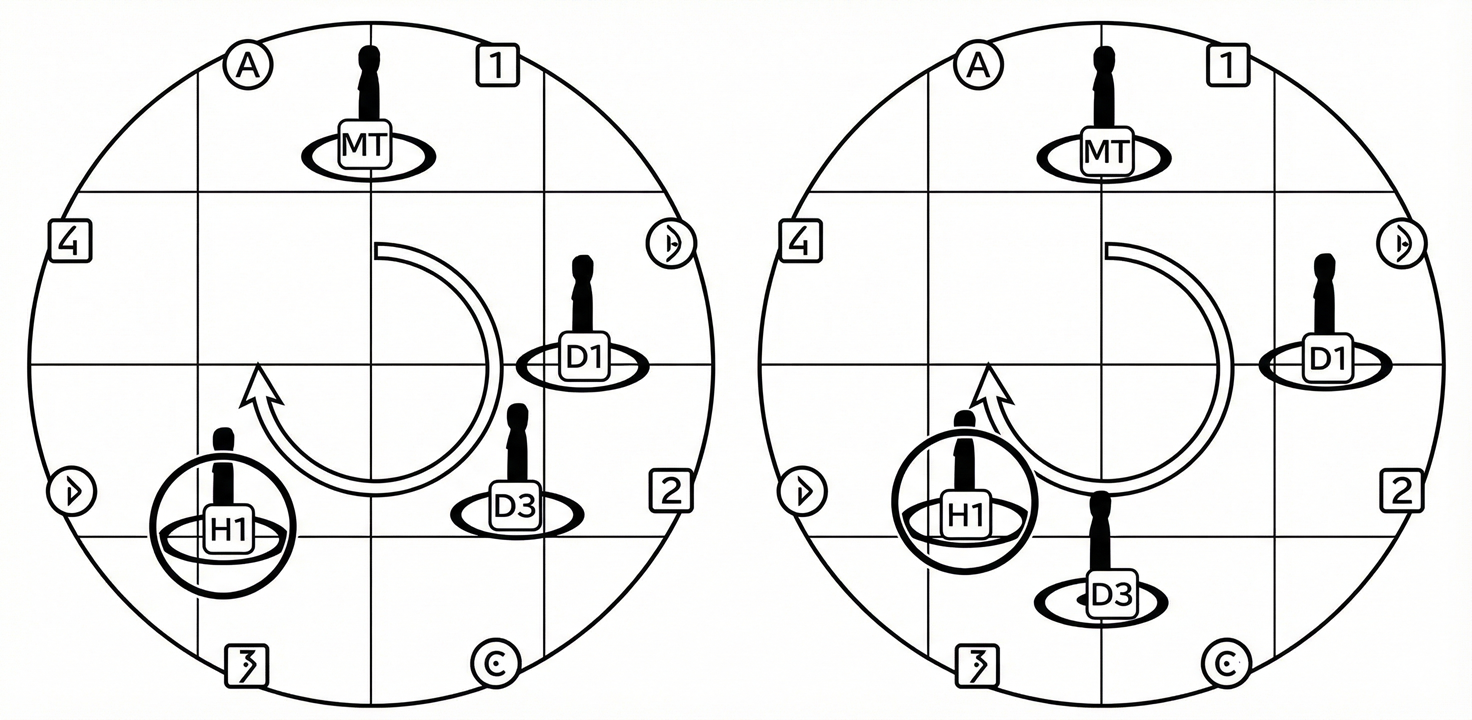 下の画像で、右がスプレッドソニックを処理する場合の散開位置例です。