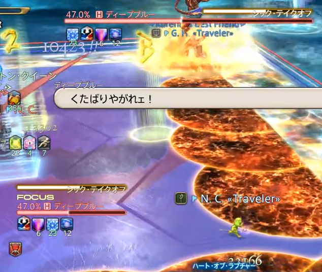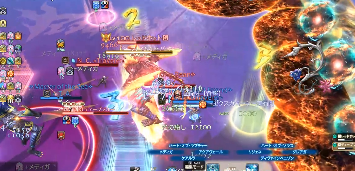 問題は、上記の通り、青ボスが対岸パターンで、いきなり散開してしまうため、自分側のタンクとコンビのDPSの回復が漏れやすいです。