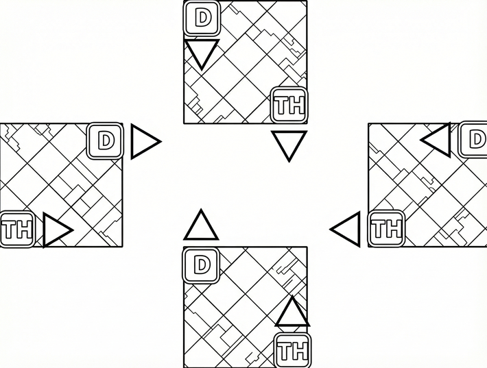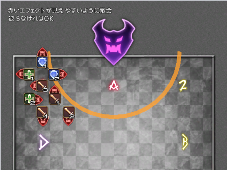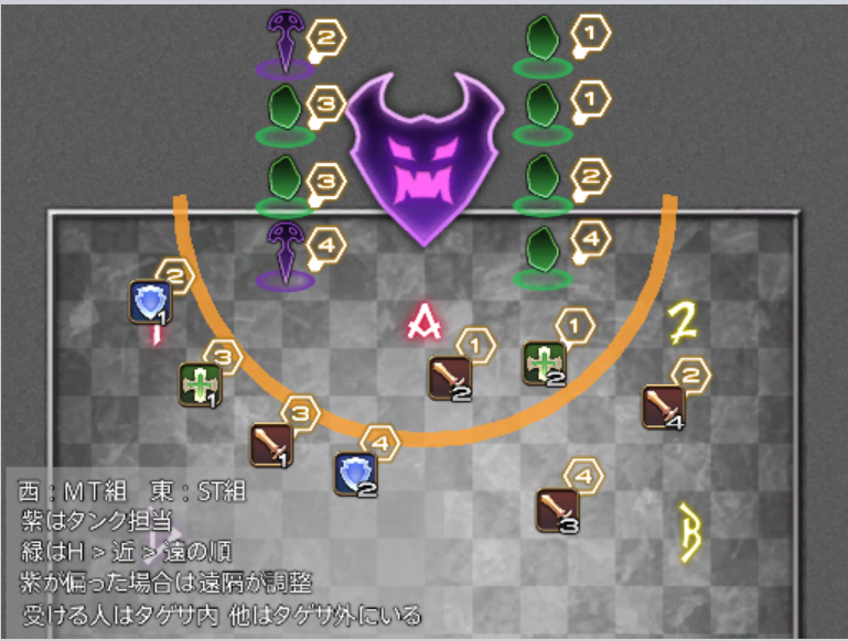 - A/B/C/D: 東西南北(十字)に配置します。ボスの基準位置や散開の目安となります。