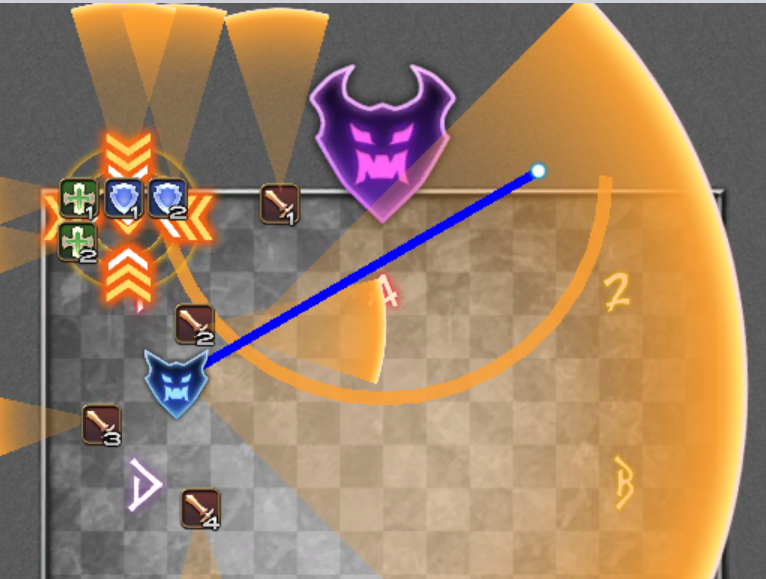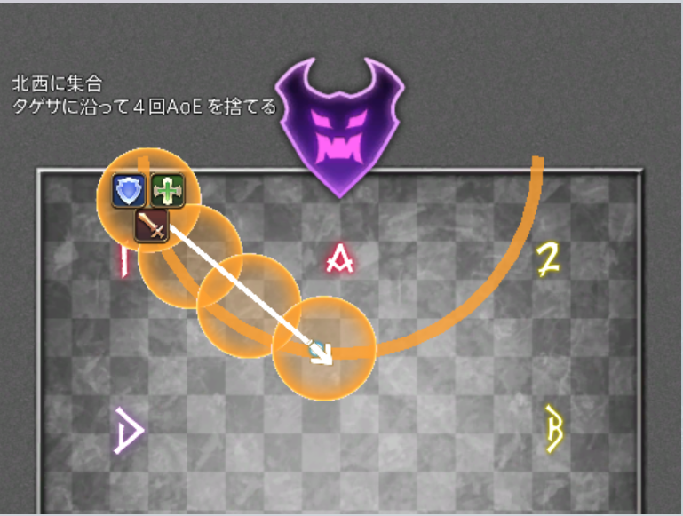 - 1/2/3/4: A/B/C/Dの間(斜め)に配置します。斜め方向への散開やギミック処理の位置把握に使用します。