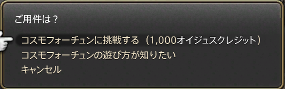 メカオペレーションの報酬は、ロボに乗らないサポーターでの参加の場合でオイジュスクレジットx1000のため、1回参加でコスモフォーチュンが1回引けます。