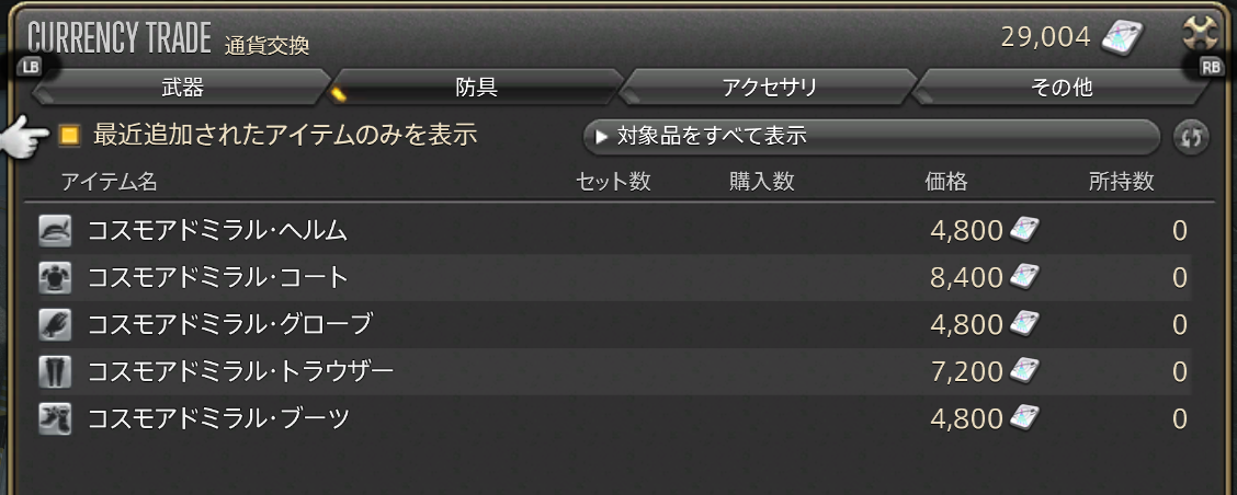 下記がコスモクレジットで堅実に交換できる新規アイテムの一覧になります。