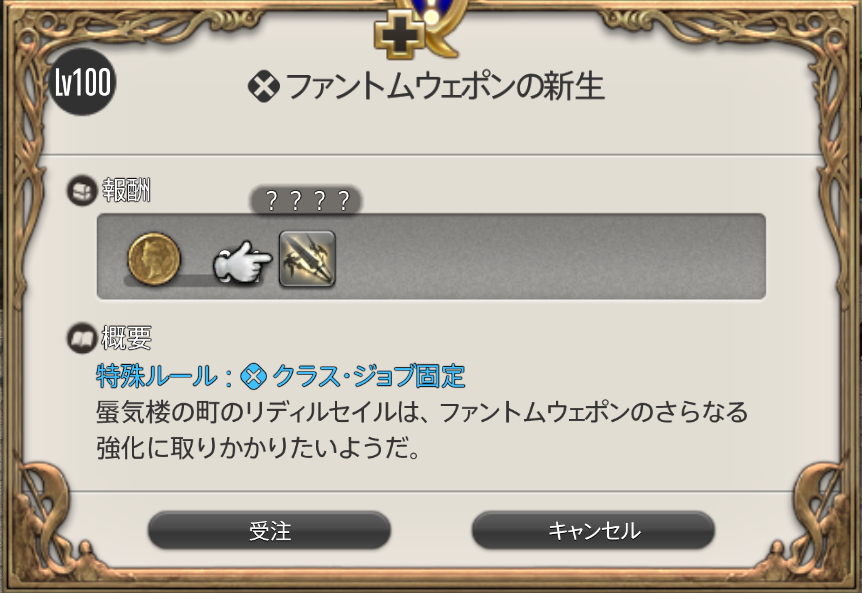 ファントムウェポンとは、レベル100の武器強化コンテンツですね。