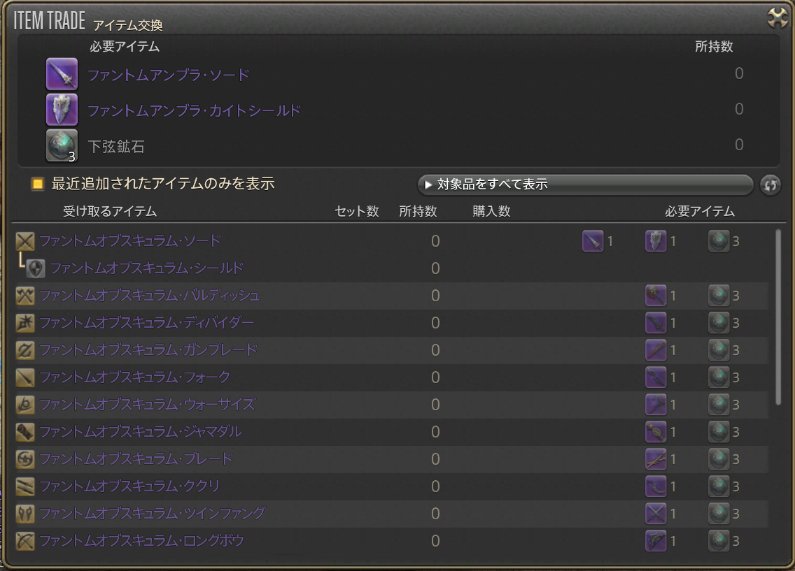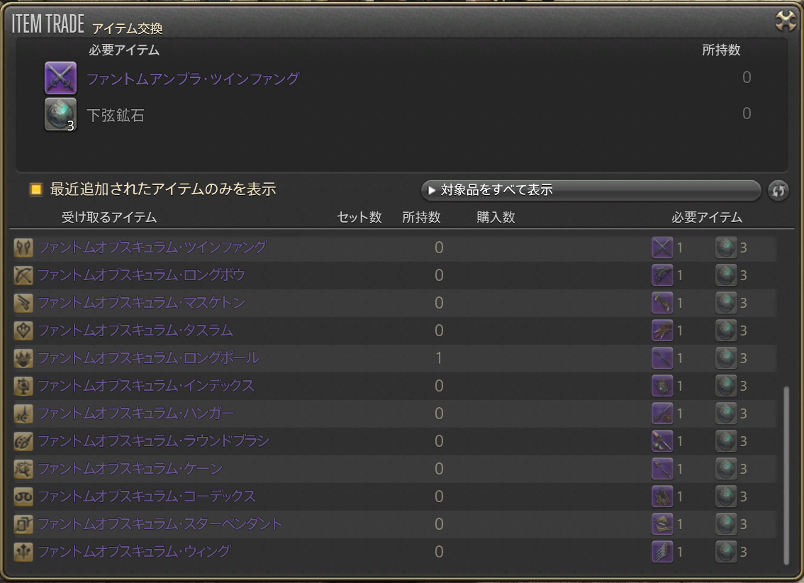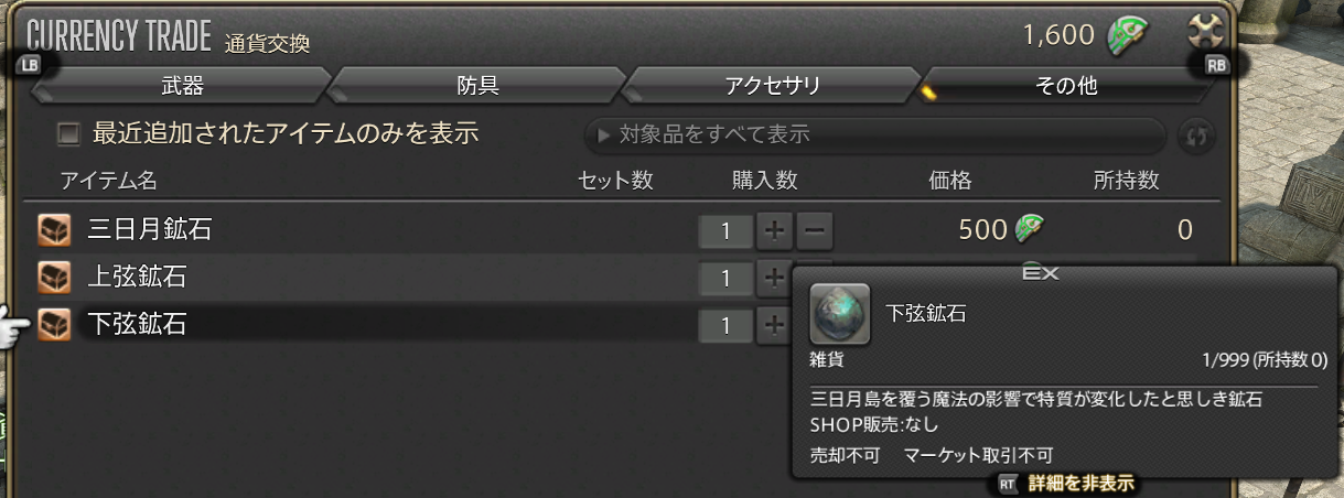 要求アイテムは、下弦鉱石で、前段階のファントムウェポンでも石交換を担当していたのと同じNPCで交換可能です。