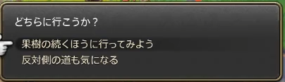 ここで「果樹の続く方に行ってみよう」を選ぶと、ルート1、2、4に分岐します。