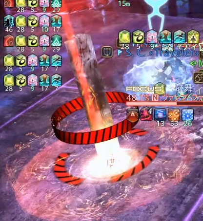下のSSが茨と呼ばれるもので、個人DPSになっているため、自分のものを破壊後は、他の人のものではなく、自分の茨の位置のままボスを殴ります。