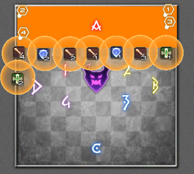 下の画像で、フィールド右側のロールに該当する場所に、円形範囲攻撃予兆を捨てます。