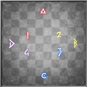 下の画像で、右下の4ロールマーカーが、それぞれ円範囲の散開位置です。
