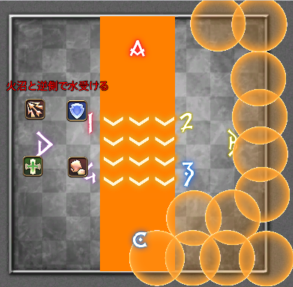 具体的には、既に出ている炎AOEの逆側です。